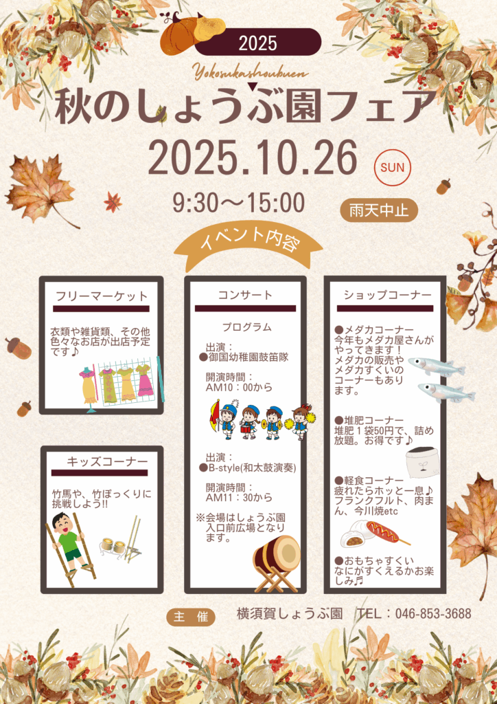 日時:令和7年10月26日(日)9時30分~15時00分 ※雨天中止
