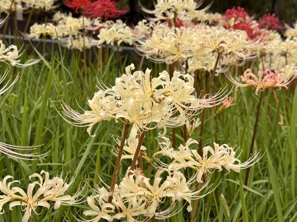 2025年10月3日 / 最終更新日時 : 2025年10月3日 iris01 開花情報 開花情報 10月3日現在の開花情報です。 白い彼岸花がとても綺麗に咲いております。 赤い彼岸花は、一部エリアではまだ鮮やかに咲いている彼岸花もありますが 見頃が過ぎてきておりますのでお早めにお越しいただけたらと思います。